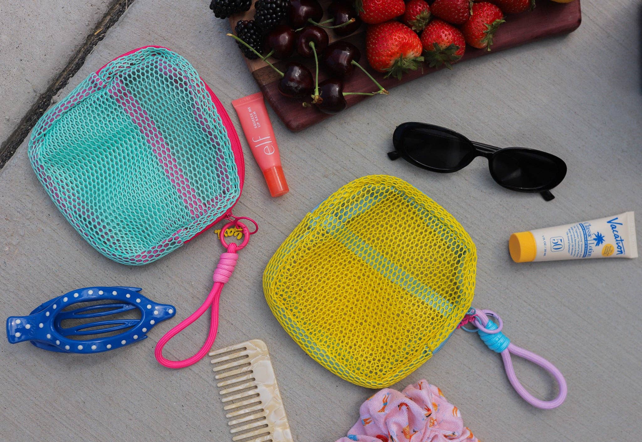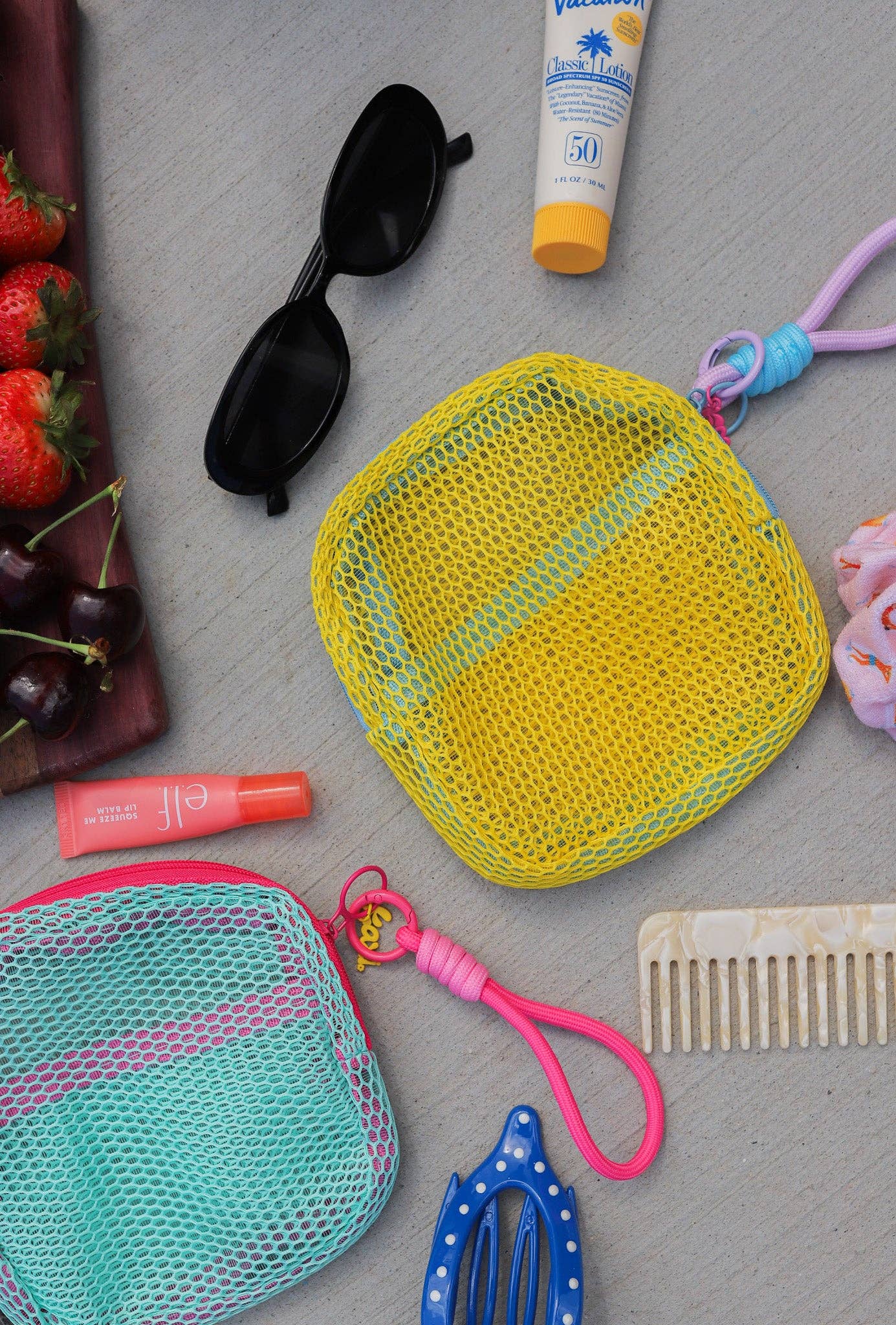 This cutie little bag is going to be attached at your hip all summer long! These fun neon mesh bags are perfect to hold all of your poolside essentials and keep your pool bag organized! It has one small pocket inside for your more important things.