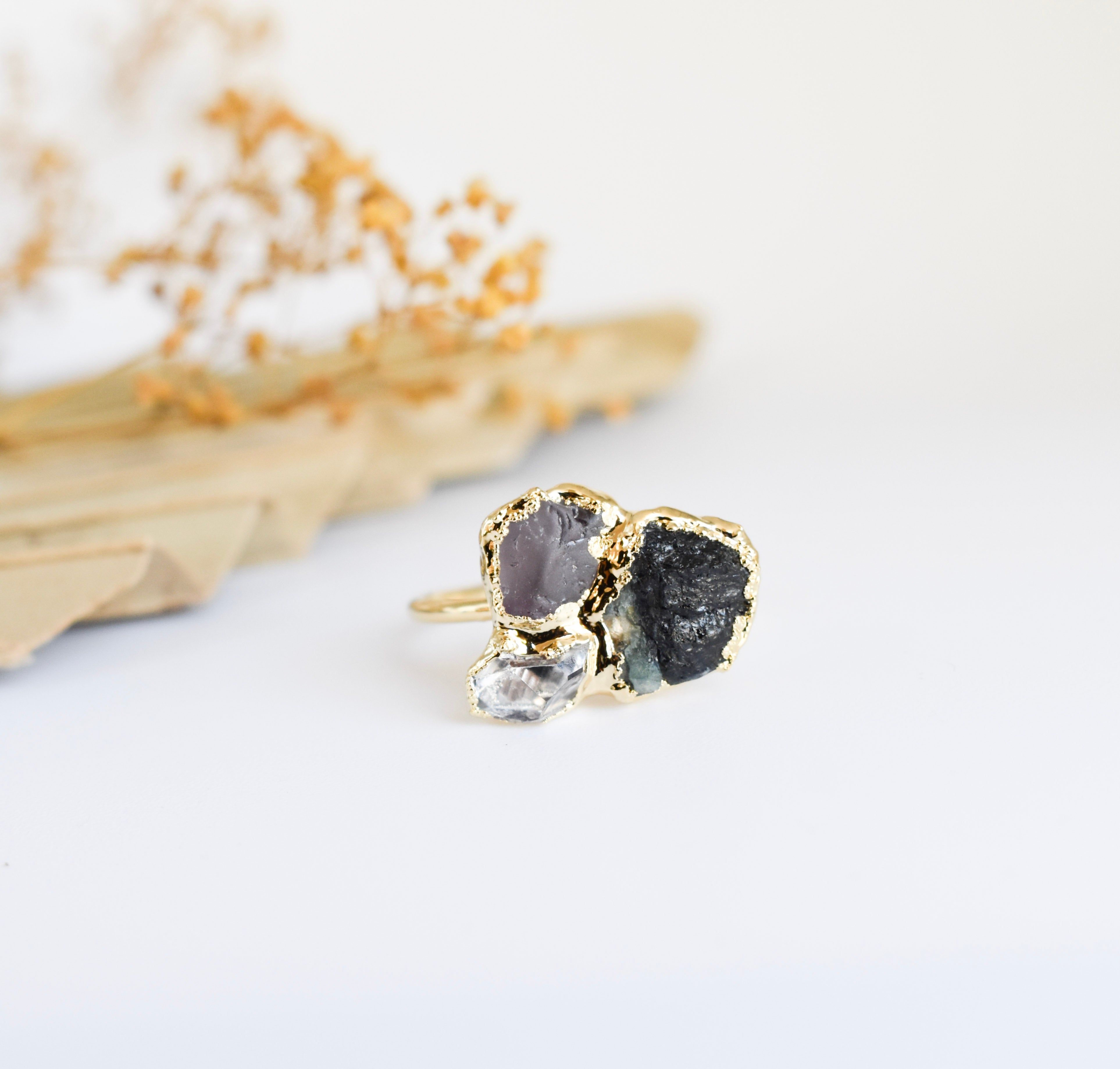 Gemstones: emerald, Herkimer diamond, rose quartz