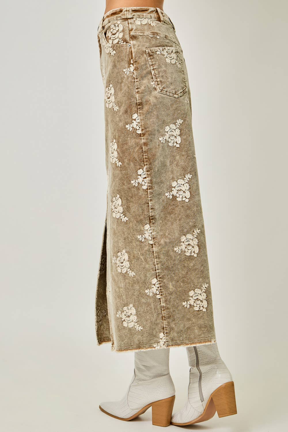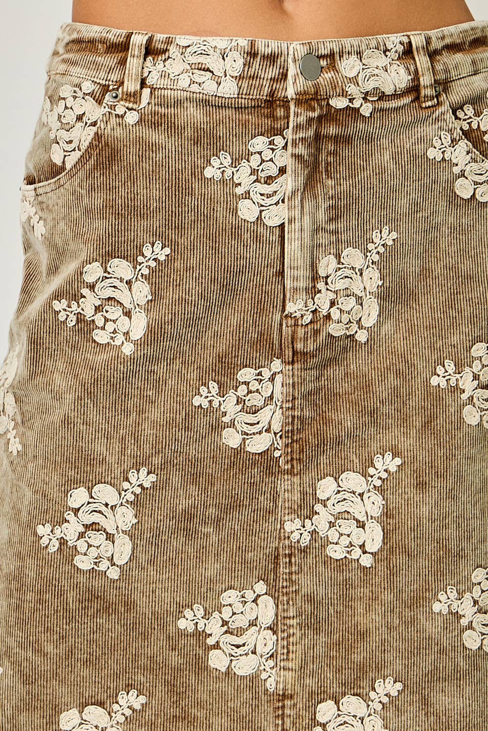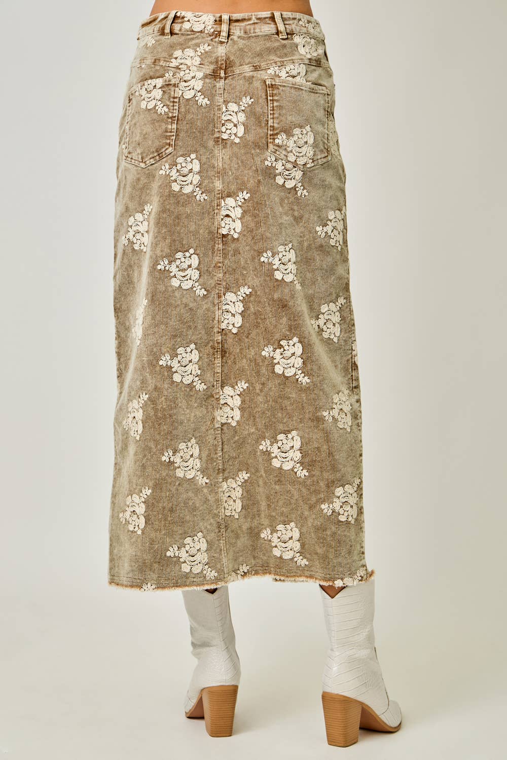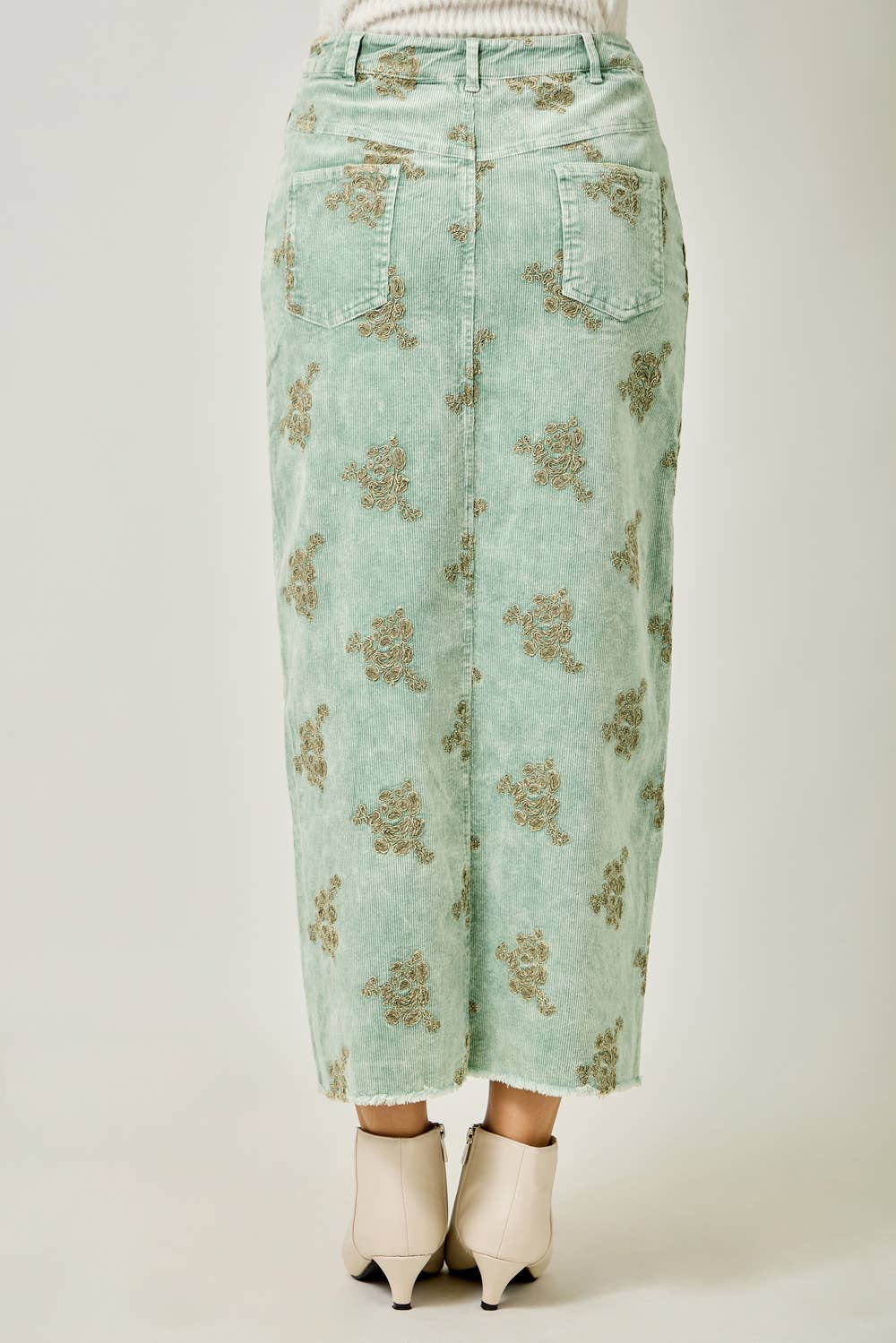 - Embroidered Front Slit Corduroy Skirt
