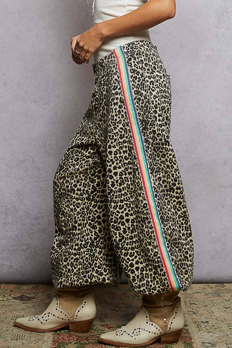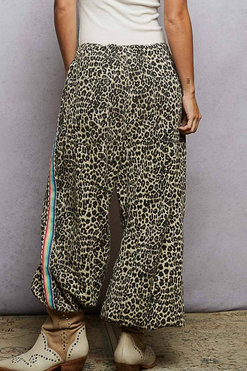 Designed in pants, relaxed fit in twill with side tape detail pointed camo or leopard detail.