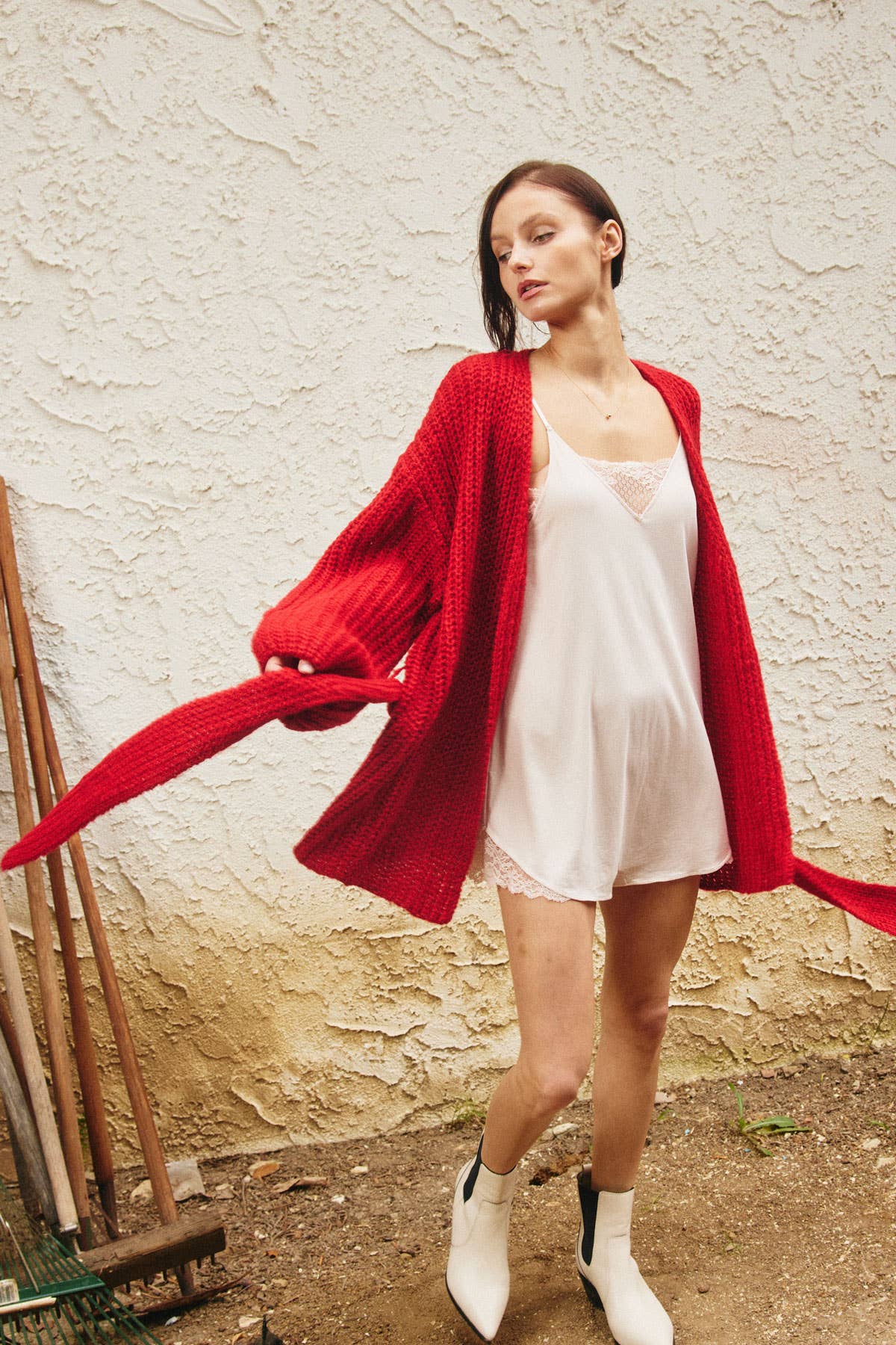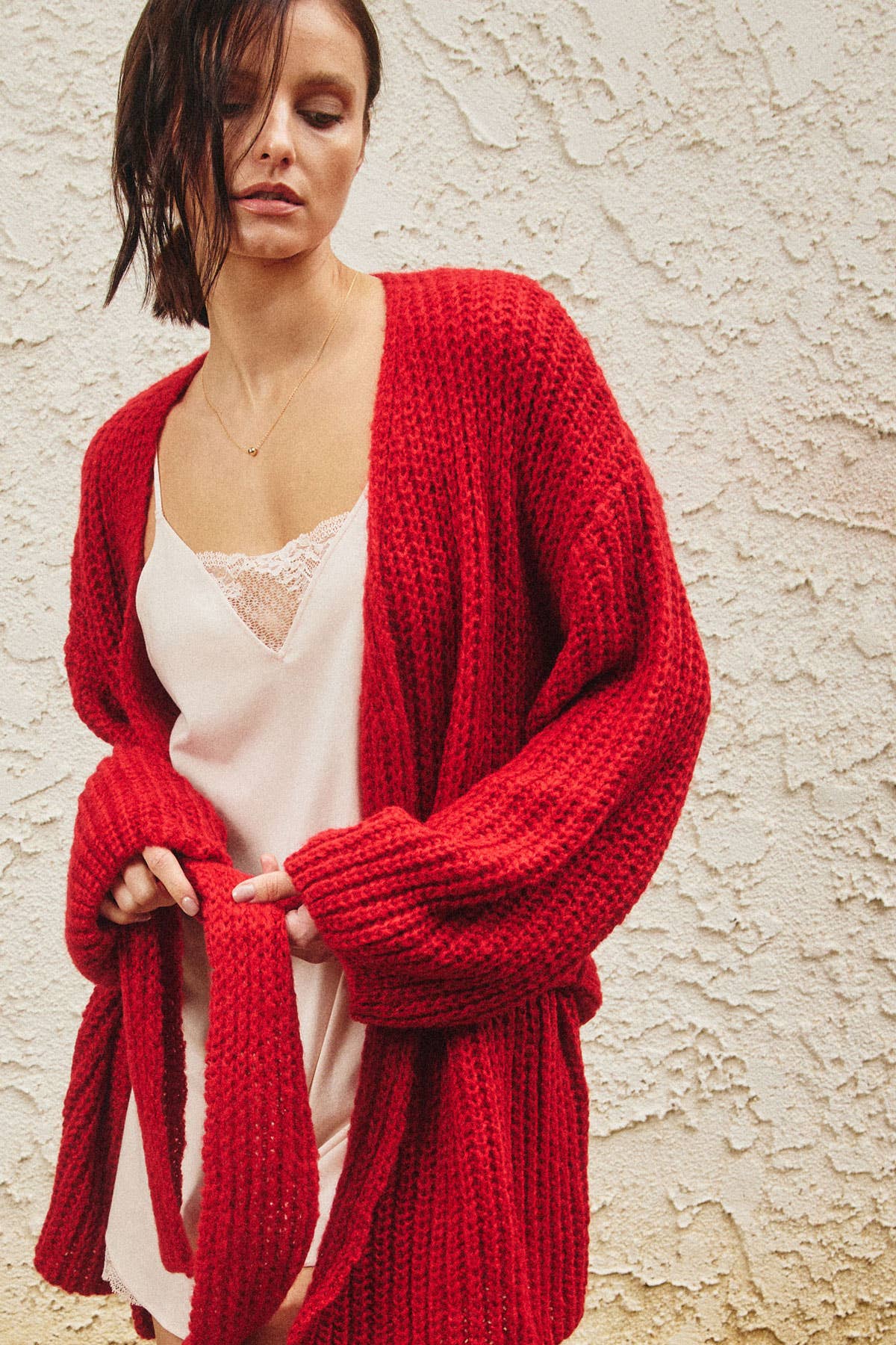 Belted Cardigan Sweater in Scarlet