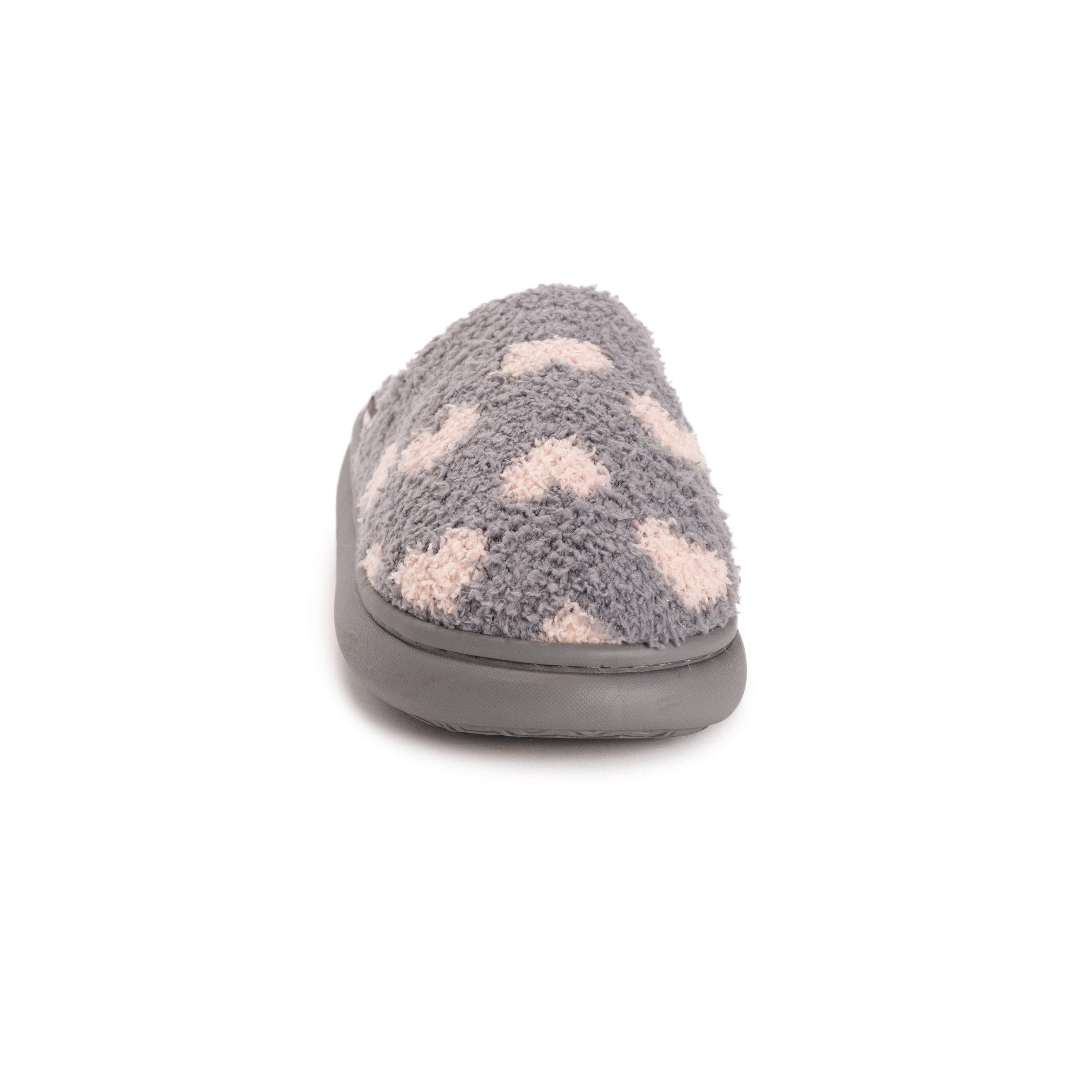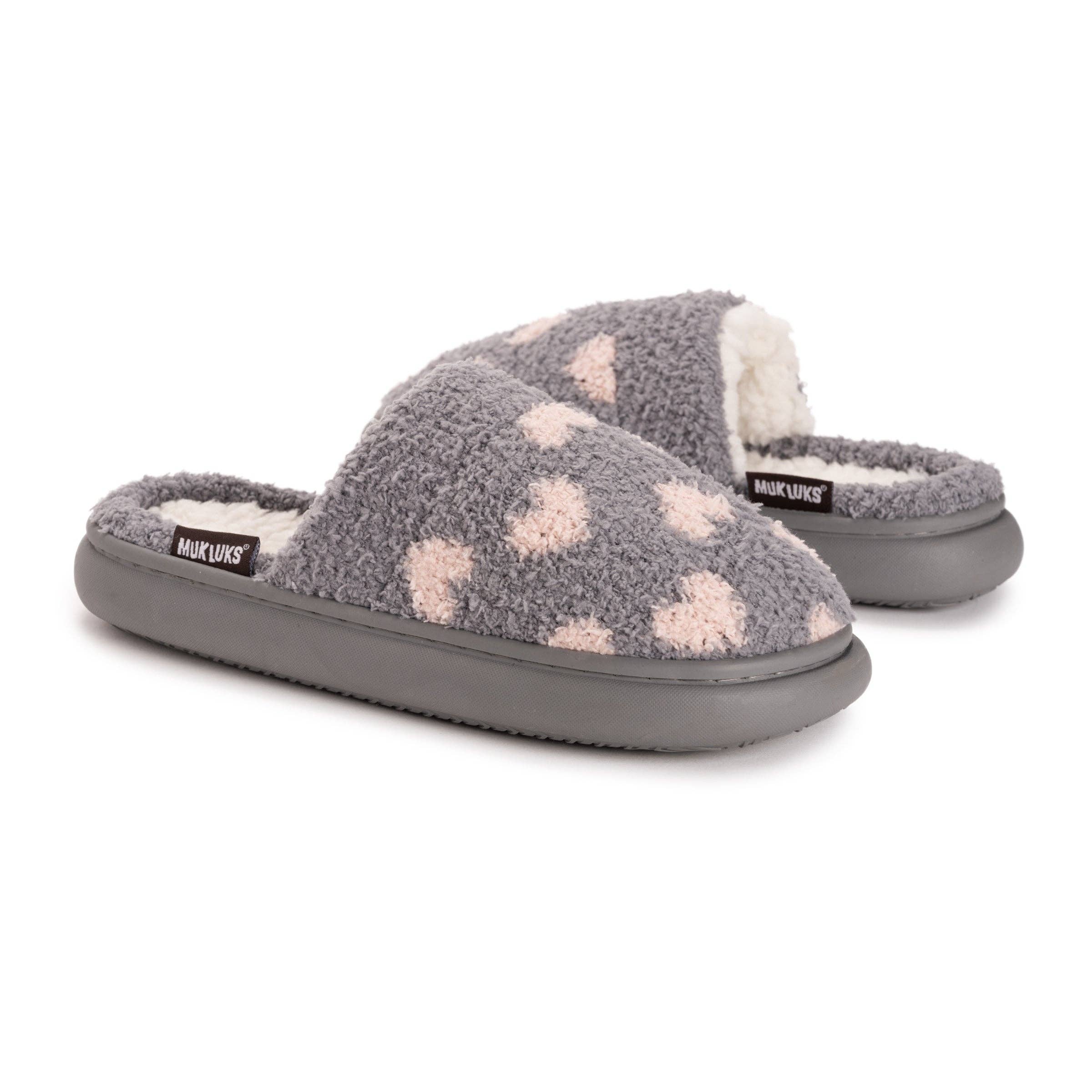 Welcome to your ticket to paradise, MUK LUKS Cori Cozy Crew Scuff features a slide on slipper designed with allover hearts and a bubble outsole. The small platform gives you a nice little boost, courtesy of the memory foam lining, you'll feel like you're walking on sunshine. With a warm lining for indoor use, these slippers are as comfy as they are cute! Say hello Cori.
